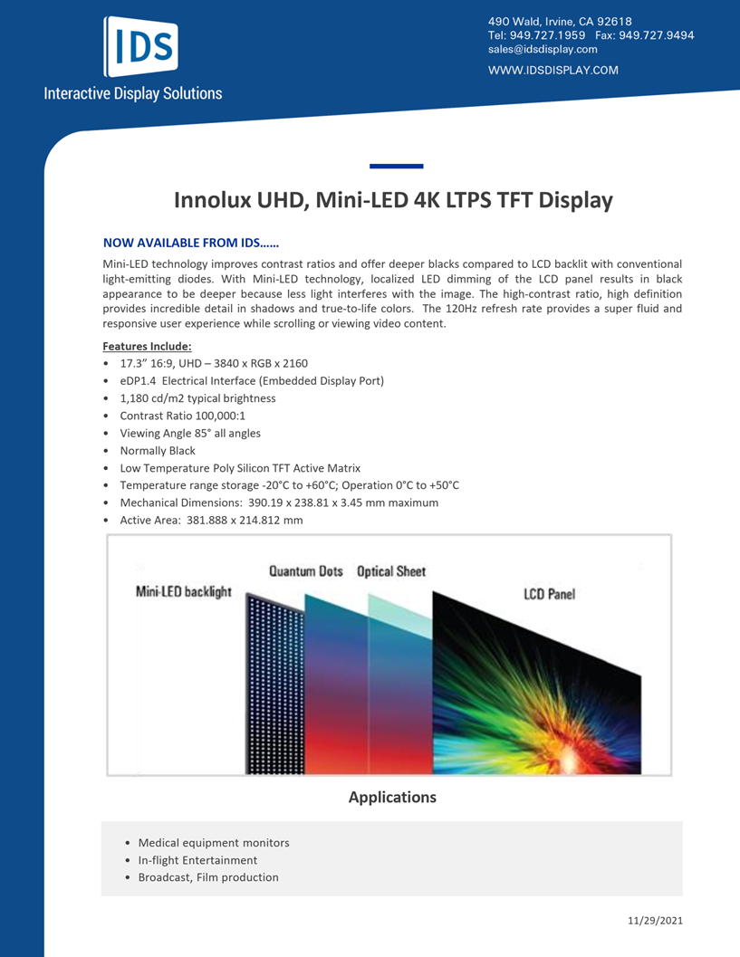 Innolux UHD, Mini-LED 4K LTPS TFT Display
